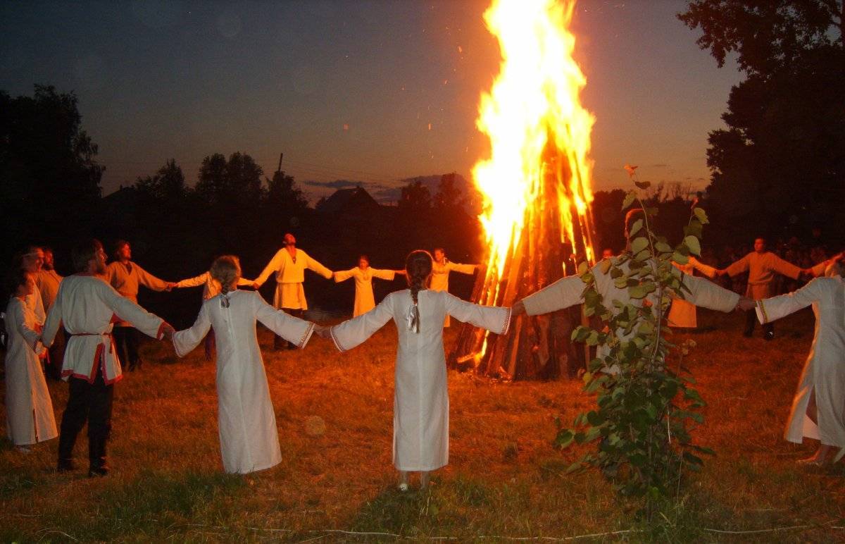 Обязательным элементом праздника был ритуальный купальский костер, который обладал особой очищающей силой. По центру огневища ставили столб с черепом коня или коровы. Вокруг костра водили хороводы, пели песни и танцевали. Когда пламя уменьшалось, начиналась вторая часть обряда – прыжки через костер. Считалось, что перепрыгнувший через пламя человек очищается от злых духов. Девушек, которым не удавалось преодолеть высокое пламя, называли ведьмами.