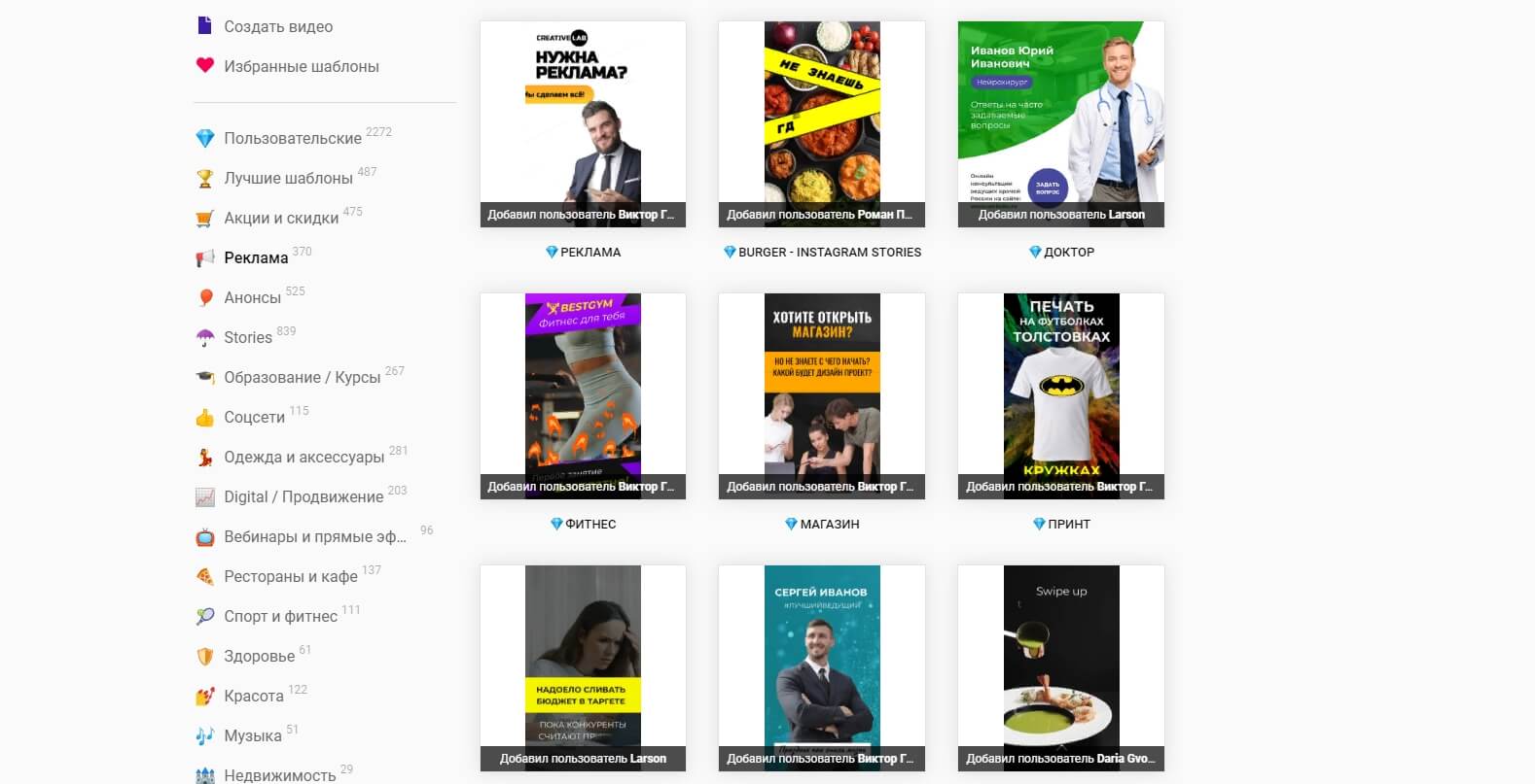 Бесплатный конструктор для создания роликов с готовыми шаблонами. При выборе подходящего надо заменить текст и картинки. Но также можно создавать видео с нуля. Правда, конструктор бесплатный только в том случае, если вас не смущает на готовом видео фирменный логотип-уточка. Чтобы избавиться от него, надо заплатить 990 рублей в месяц. Тогда еще у вас будет возможность вставлять фоновую музыку и экспортировать в gif. Но это необязательно.