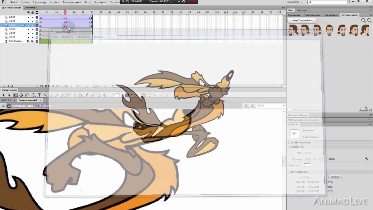 и видео с камеры. Анимация создается при помощи расстановки ключевых кадров, поэтому в принципе работы