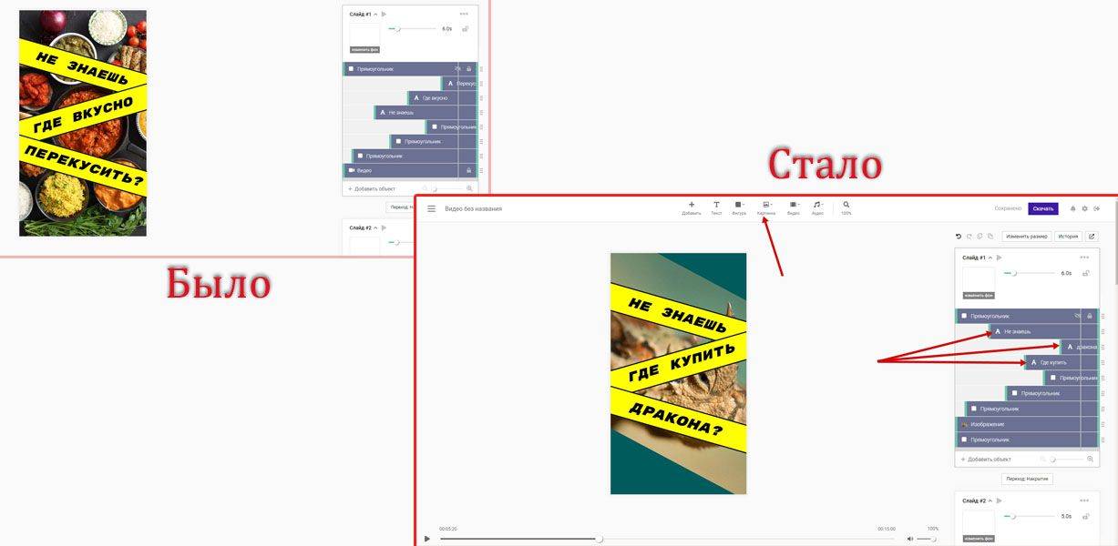 Рассмотрим создание видео с нуля и с помощью шаблона.