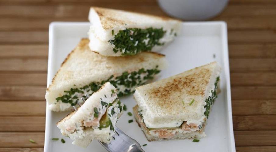 В первые сутки дороги можно приготовить очень вкусные сэндвичи с сыром, огурцами и копченым лососем. Для этого понадобится: