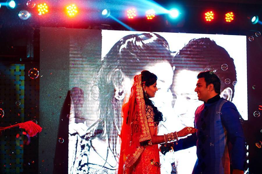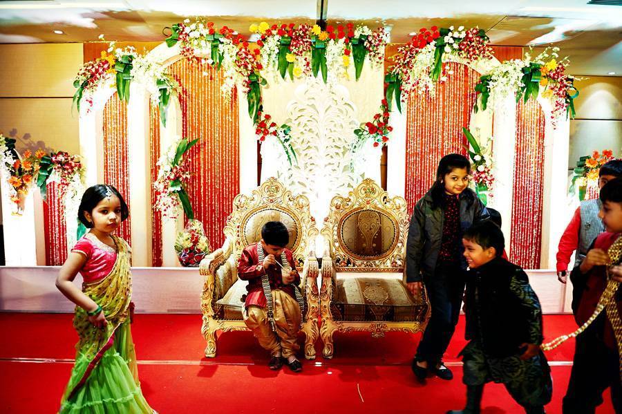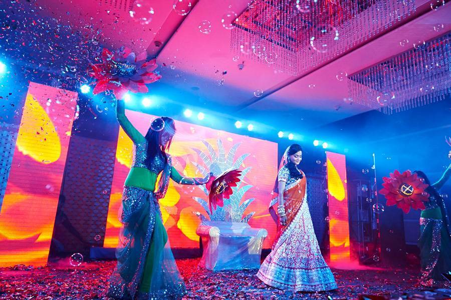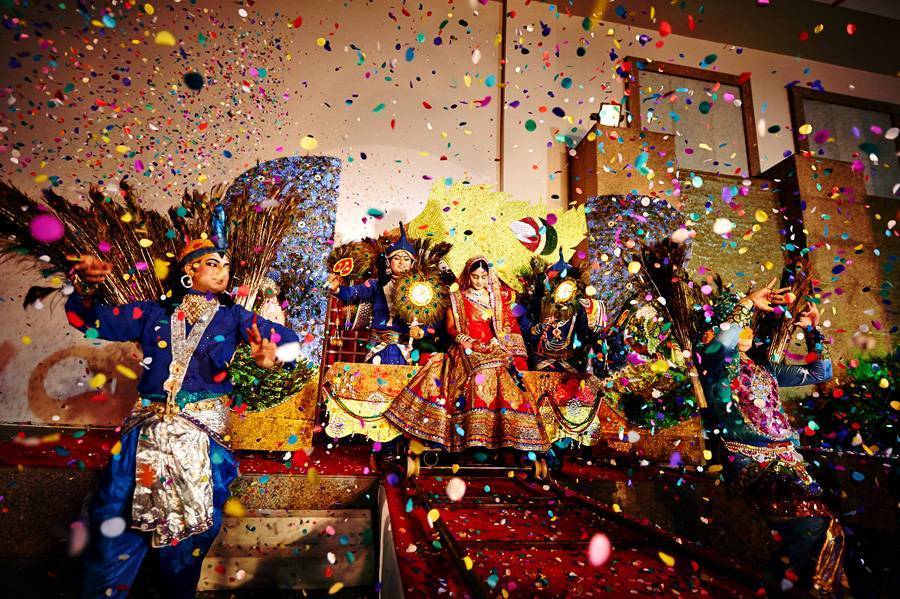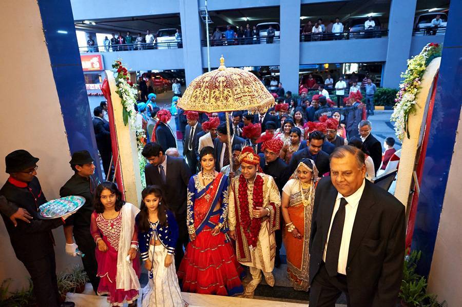 Он заходит на специальный пьедестал. Наступает кульминационный момент. Сейчас должна появиться невеста. Этот момент на индийских свадьбах ключевой, и каждая семья старается оформить его максимально эффектно