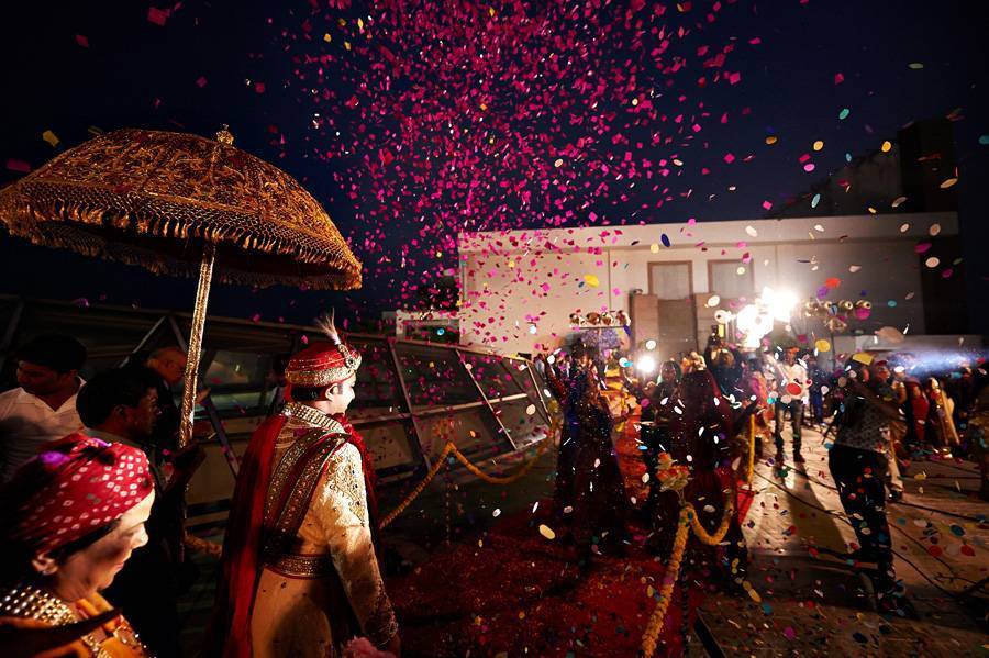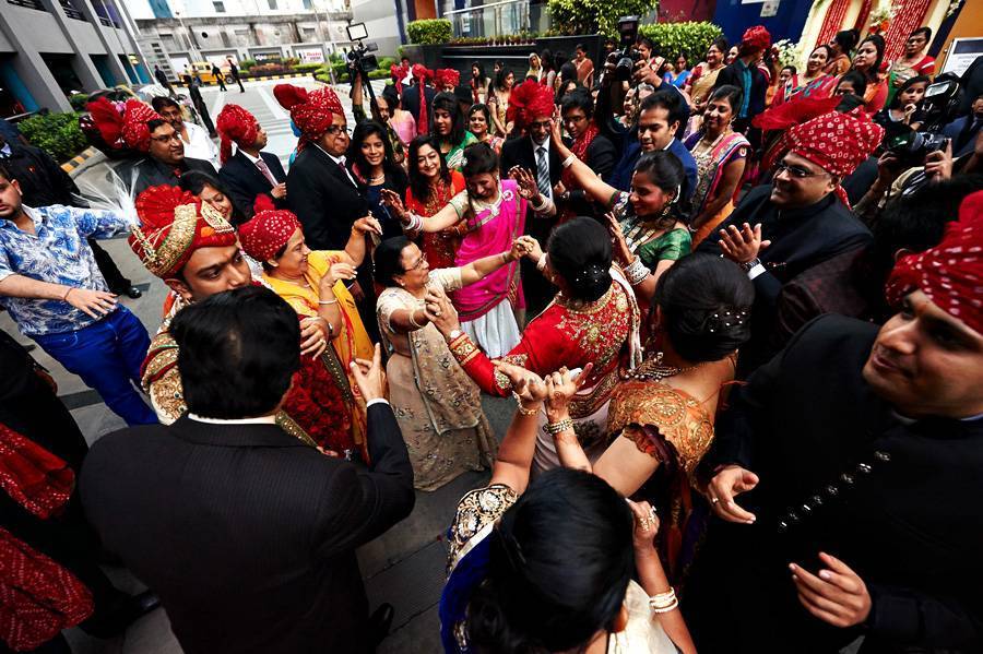 Сама свадебная процессия в Индии шумная, с барабанами и музыкой. Жених едет верхом на белом коне, сопровождают его близкие, двигаясь рядом. Иногда они могут остановиться, чтобы потанцевать. Если вы встали в пробку, то возможно причина как раз в свадебной процессии. Она двигается медленно, и часто по проезжей части. Местные жители не ругаются, как-никак свадьба. Остается только любоваться на это музыкальное и яркое шествие.