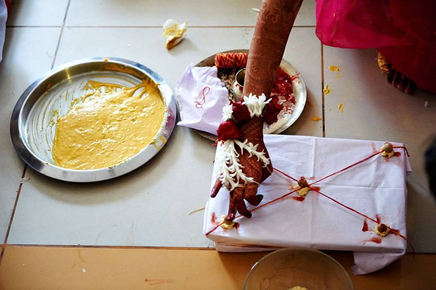 Необычен и красив ритуал жертвоприношения Ямарадже – богу смерти. Выполняется он с помощью риса, который просыпается сквозь пальцы молодых в костёр. Затем гости совершают круг вокруг жертвенного огня, призывая тем самым даровать молодой семье благодать.