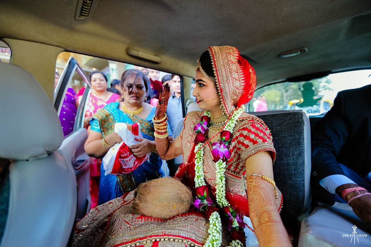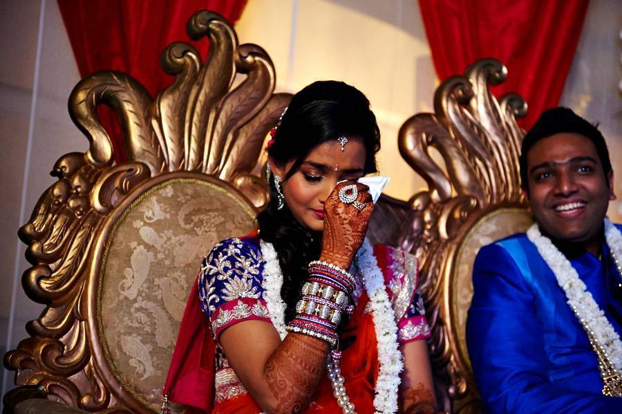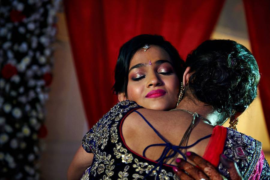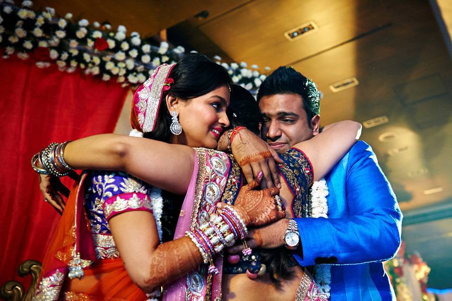 Особенно поражает воображение западного человека обряд, когда жених забирает невесту из отчего дома. Невеста окунает ладони в куркуму и оставляет следы на стенах родительского дома и лицах родных. При этом все заливаются искренними слезами. Такое прощание может длиться несколько часов, и плач невесты не прекращается все это время. Понять нам это сегодня, когда так распространено сожительство до свадьбы, трудно. Однако в небольших индийских городках, где сохранились многие традиции, подобные картины можно наблюдать до сих пор. Дело в том, что девушка, которая никогда не выходила одна из дома, очень сильно привязана к своим родителям. Тем более что в следующих обычаям индийских семьях к дочери относятся с большим почтением и заботой, как к богине (на санскрите «канья»), например, считается неблагоприятным, если дочь донашивает за кем-то одежду. С замужеством ее беззаботная жизнь заканчивается. Она переселяется в новую большую семью, где ей предстоит жить вместе с другими родственниками мужа, свекровью, свекром и так далее. И в доме мужа она уже не богиня, а служанка: если в отчем доме все служили ей, то теперь она сама должна служить и угождать всем. Поэтому можно понять тот страх, который испытывает девушка с переменой в своей жизни.