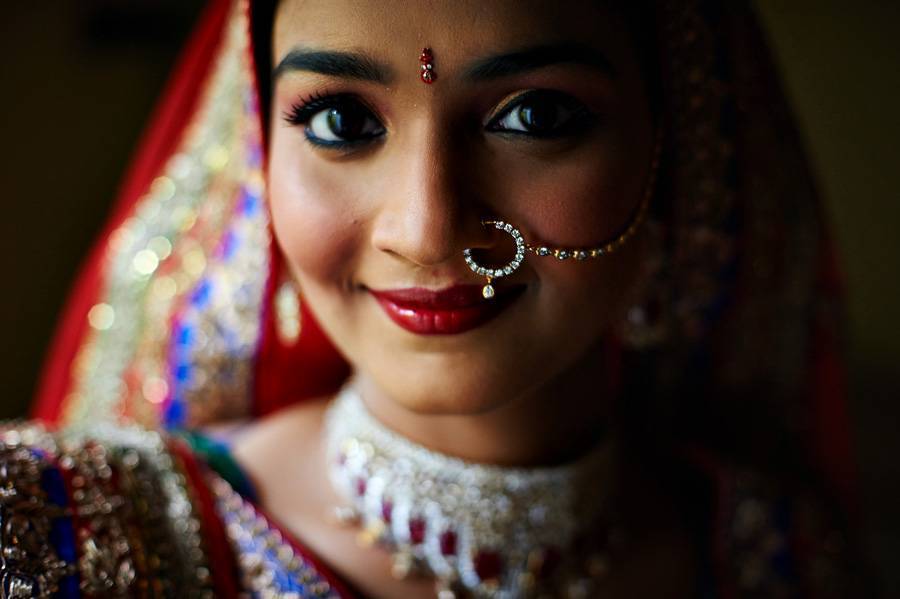 Дополнить образ невесты в индийском стиле можно с применением яркого макияжа. С помощью основы в виде тонального крема и пудры нужно замаскировать все имеющиеся несовершенства кожи, но так, чтобы саму косметику было незаметно.
