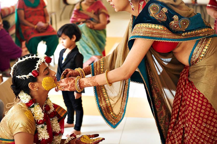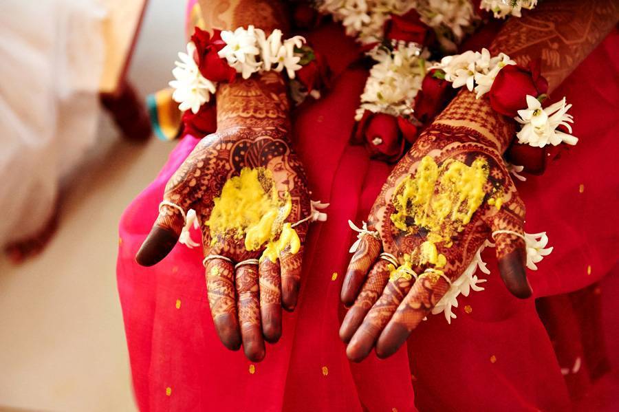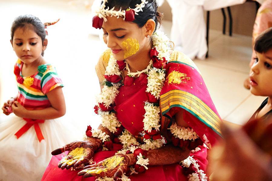 Например, молодые в день бракосочетания демонстрируют всем сияющие от специальной пасты, изготовленной из куркумы, руки и ступни. А у порога мать невесты при встрече защищает зятя от зла меткой тилак.