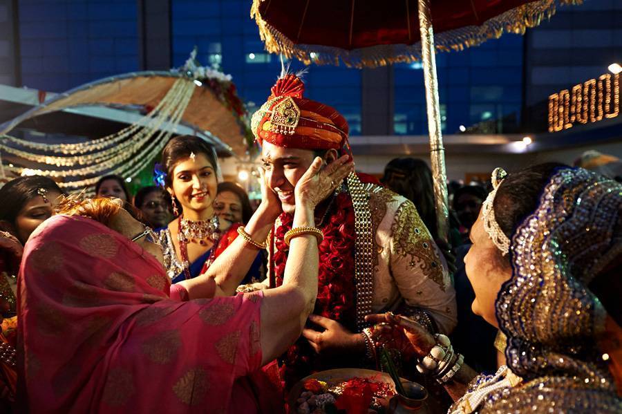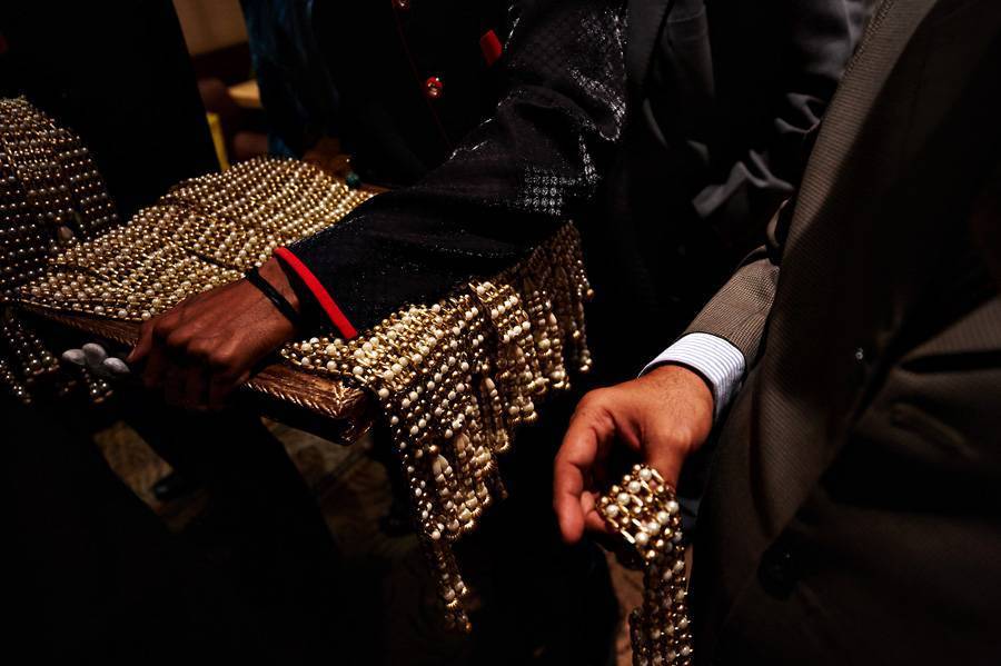 Жених идет на церемонию. Его задаривают драгоценностями, поют ему песни, танцуют вокруг него и благословляют. Всё очень ярко и шумно