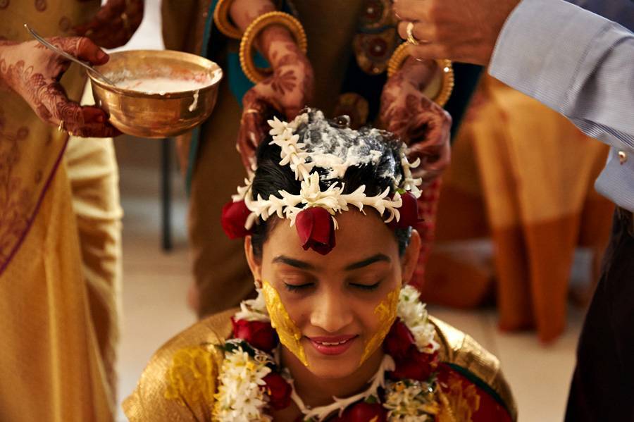 Предваряют свадебную церемонию различные благоприятные обряды. Они проходят в доме жениха (где не присутствуют невеста и ее родственники) и в доме невесты (где тоже не может находиться жених с родней). Например, тело невесты и жениха натирают куркумой, наносят хной рисунки на ноги и руки. Проводят пуджу (обряд поклонения) полубогам и Вишну.