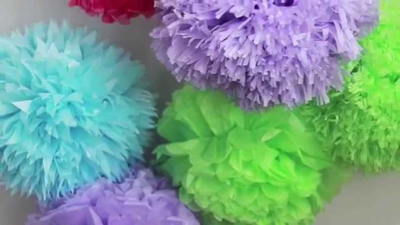 Классикой декора станет оформление помещения при помощи больших помпонов — их подбирают в одном оттенке или используют разноцветные решения, допускается сочетание больших и маленьких шаров.
