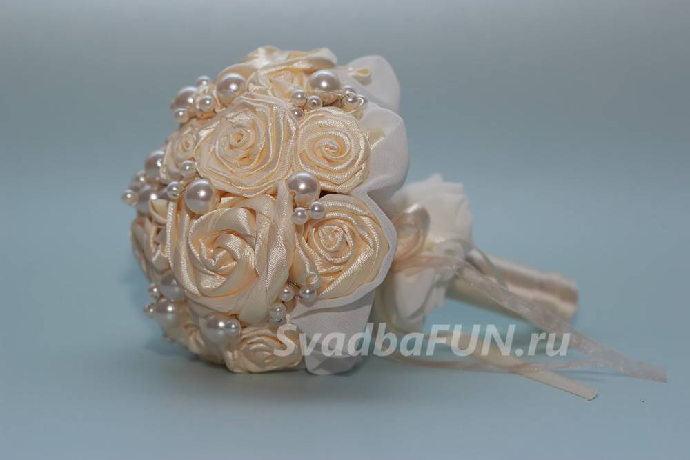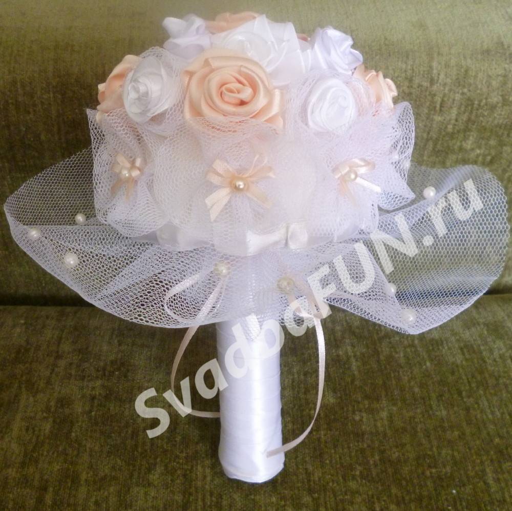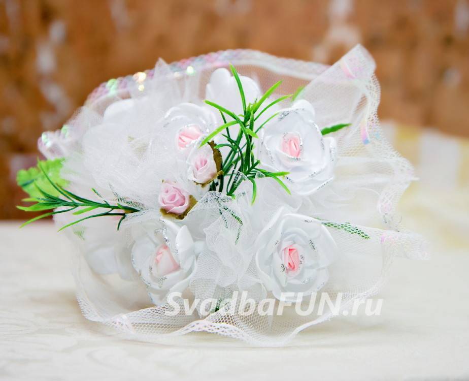 Искусственные цветы легко приобрести в специализированных магазинах, но куда интересней и приятней создать бутоны самостоятельно. Хенд-мейд вещи очень ценятся, в том числе и из-за того, что мастерица вкладывает в них свою любовь и добрые пожелания. Если тематика свадьбы и уровень владения рукоделием невесты позволяют, то допустимо создать и совсем необычный ансамбль – из мягких игрушек, конфет, перьев, пуговиц.