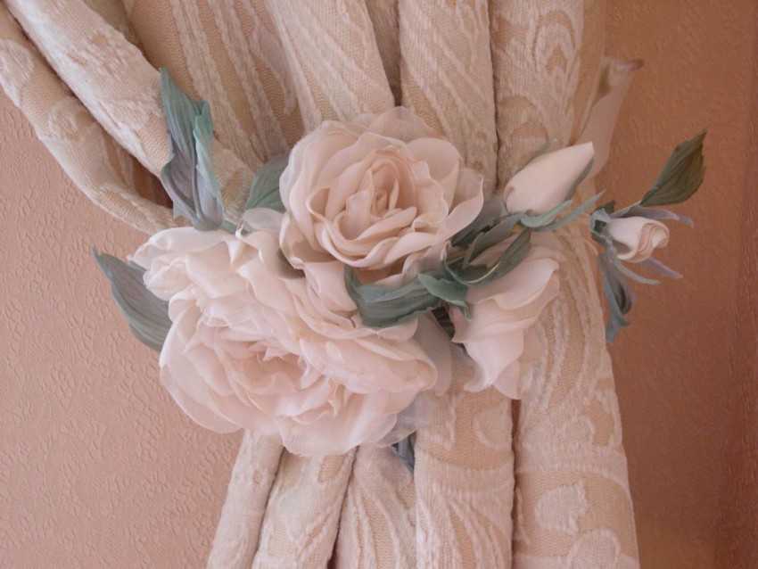 Самыми распространенными местами для размещения цветочного декора являются шторы и тюль. Однако не стоит забывать, что чрезмерное использование клея может привести к нежелательным последствиям, поскольку оформление из цветочных украшений создается на время, а вот тюль, шторы и стены останутся и после мероприятия. Именно поэтому нужно более бережно отнестись к предметам интерьера.
