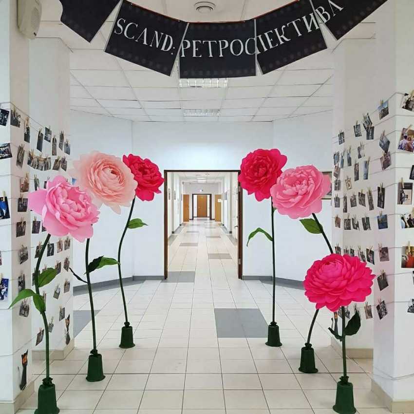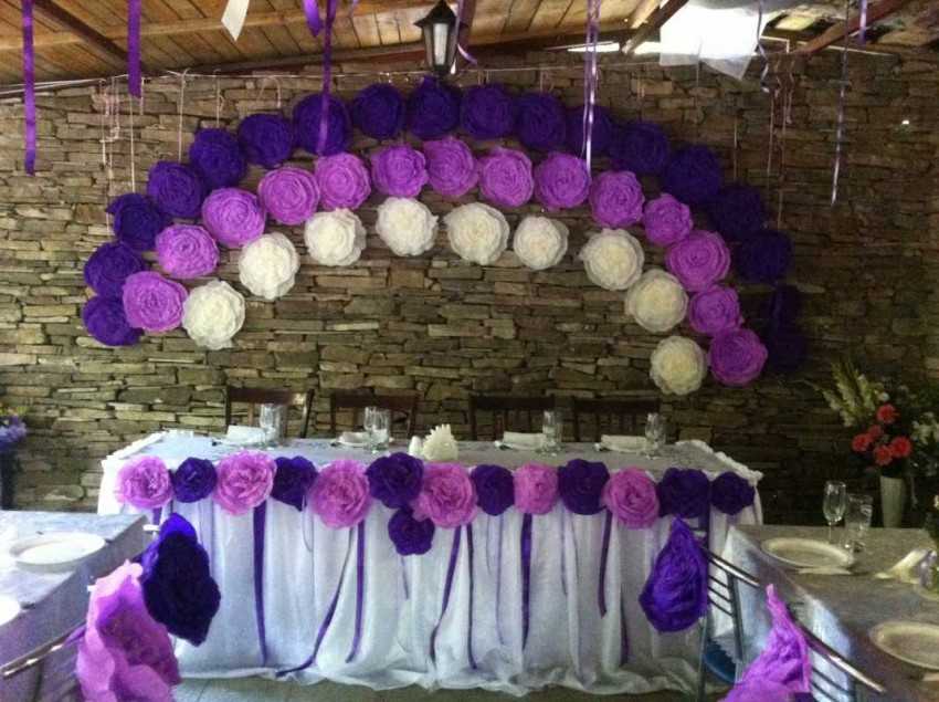 - Цветы из бумаги могут стать интересной альтернативой живым растениям. Они не завянут и будут радовать глаз на протяжении всего праздника.