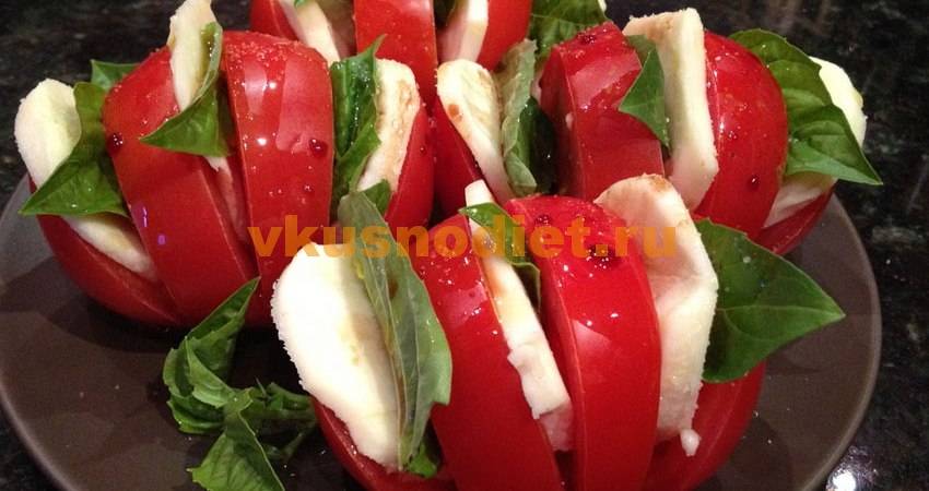 Рецепт Помидоры с моцареллой и базиликом. Калорийность, химический состав и пищевая ценность.