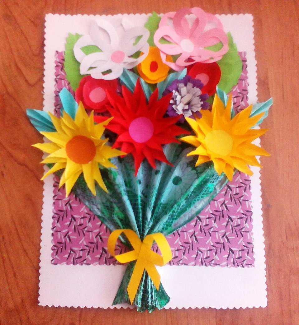 Можно еще на картонную заготовку наклеить все, что угодно: пуговицы, помпоны, конфеты и т.д. Пример смотрите на главном фото.