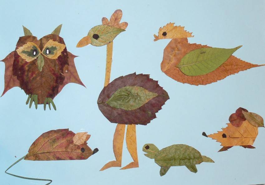 - аппликация-сюжет (изображение окружающей среды или сказочного сюжета при помощи лиственного покрова);