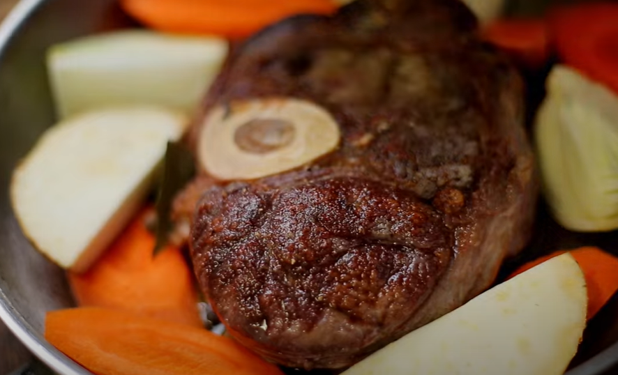 Оссобуко – блюдо итальянской кухни, его готовят из телячьей рульки. Особенность рецепта в том, что рулька нарезается широкими ломтиками вместе с мозговой косточкой. Мясо получается невероятно нежным и сочным, а вот гарнир из чечевицы особенно подчеркнет его вкус.