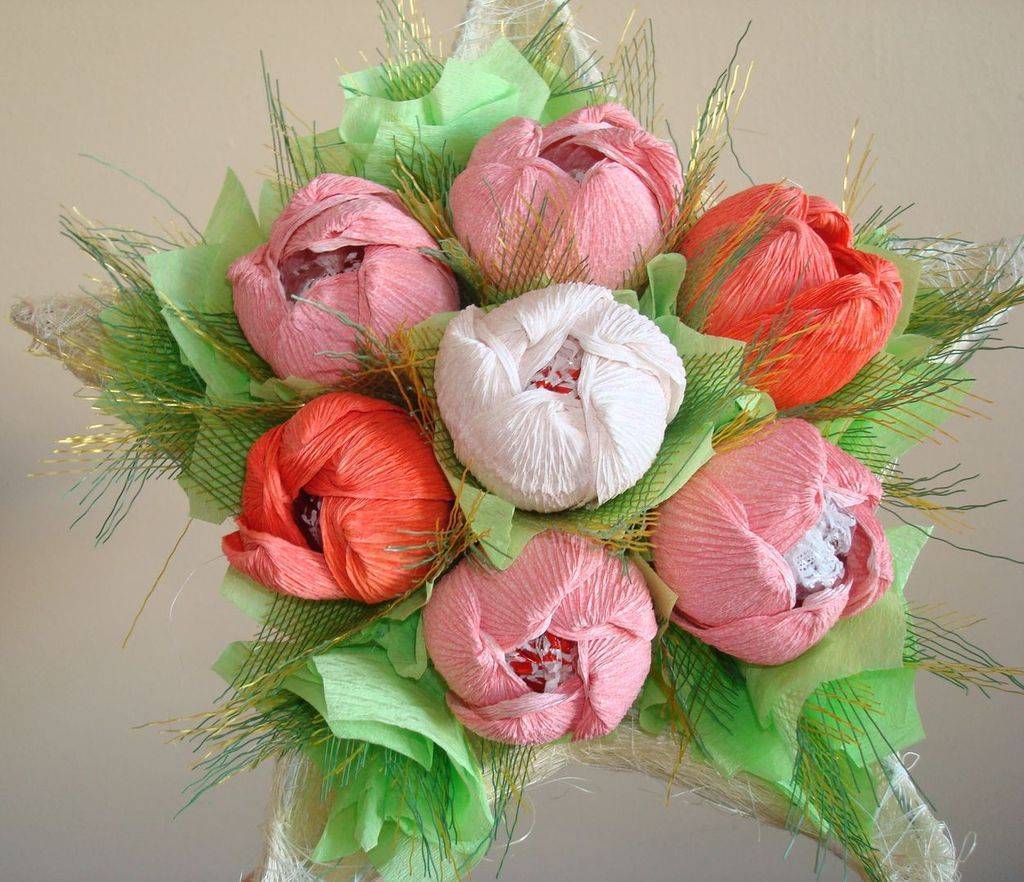 Букет из чупа-чупсов и цветной бумаги/крепа