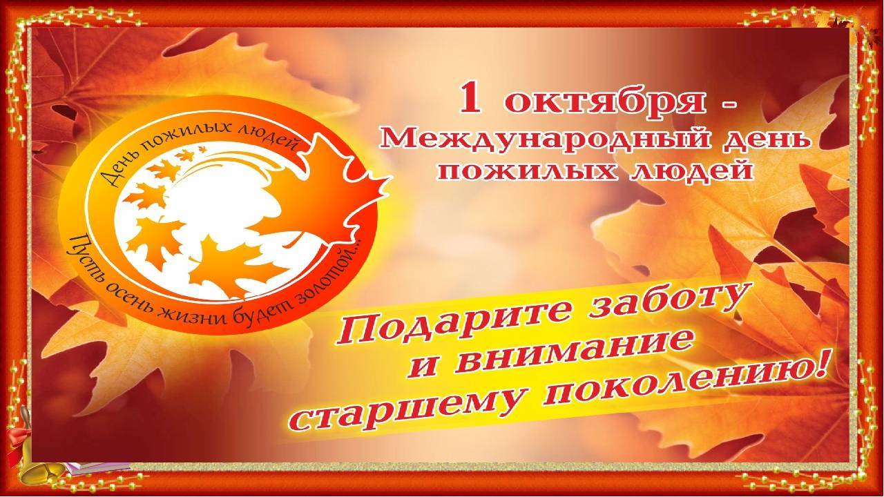 Первое октября – это ваш день, День пожилого человека. Желаю вам самого главного – здоровья, радостного сияния глаз, не терять молодости души и мечтаний, делиться со следующими поколениями мудростью и опытом. А жизнь пусть будет полна приятных минут. С праздником, дорогие!