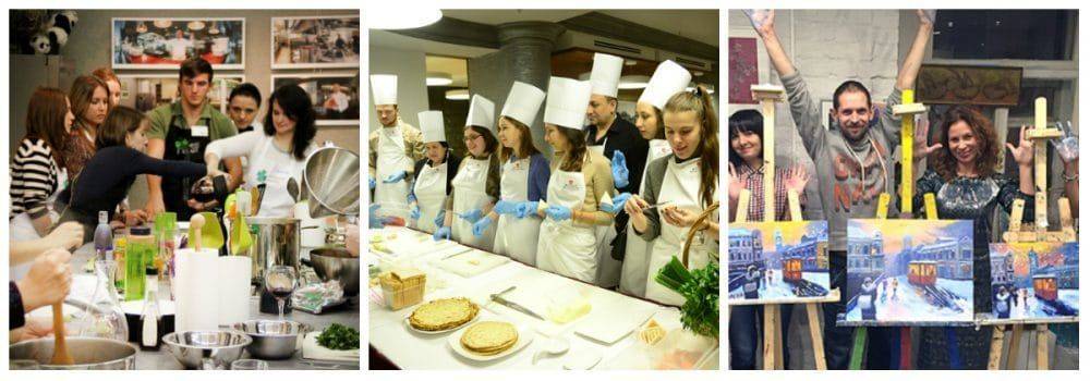 Добавьте в жизнь своих коллег и партнеров по бизнесу капельку творчества. Проведите на юбилее фирмы кулинарный мастер-класс. Приготовьте своими руками шоколадный десерт, научитесь крутить роллы. Удачной альтернативой конкурсам станет урок живописи. Можно нарисовать общий портрет сотрудников или освоить технику шаржа. Выберите мастер-класс по своему вкусу и веселый запоминающийся юбилей вам будет обеспечен.
