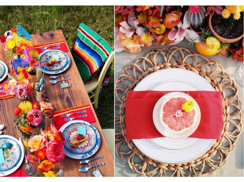- Как правило, тематические вечеринки не требуют дорогого декора, вы вполне можете задекорировать базовый набор аксессуаров и многое сделать своими руками. Так, на классическую белую скатерть можно постелить дорожки из ткани в нужной расцветке.