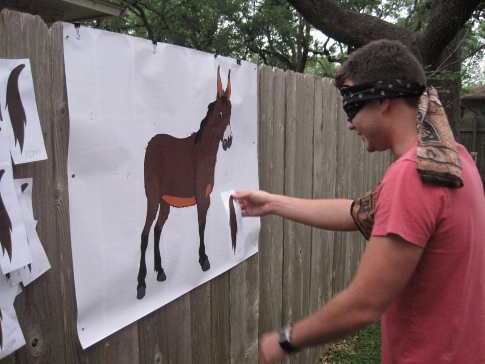 Для этого следует подготовить ватман размером А1. На нем следует красиво нарисовать ослика или любое другое животное. Ослик должен быть без хвоста (как ослик Иа в мультике про «Винни Пуха»). Каждому ребенку завязываются глаза, вручается хвостик, сделанный из ниток (пряжу заплетите в косичку и распушите).