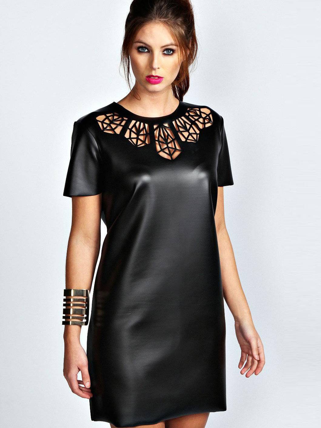 Кожаное. Платье из этого материала выглядит несколько агрессивно и, будучи облегающим, подчеркивает все изгибы и складки. Для пошива используют как натуральную кожу, так и кожзам. Рекомендуется надевать платье из кожи в прохладную погоду, поскольку оно не пропускает воздух. В модных коллекциях маленькие черные платья из этого материала на пике популярности.