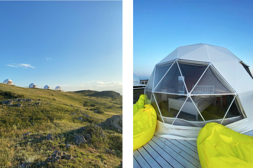 Что касается самих глэмпов: четыре комфортабельных просторных эко-купола могут похвастаться дизайнерским интерьером, оснащены кондиционерами, удобными кроватями, душем и туалетом.