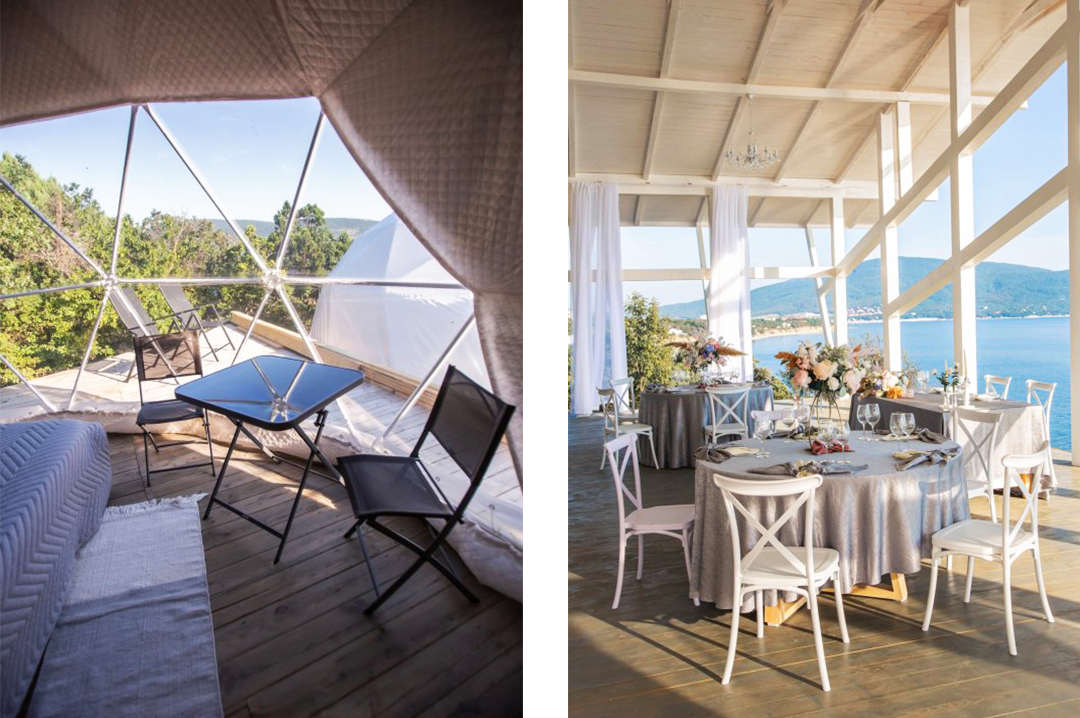 Уютные сферы расположены прямо на обрыве, из них открывается невероятный панорамный вид на Чёрное море!