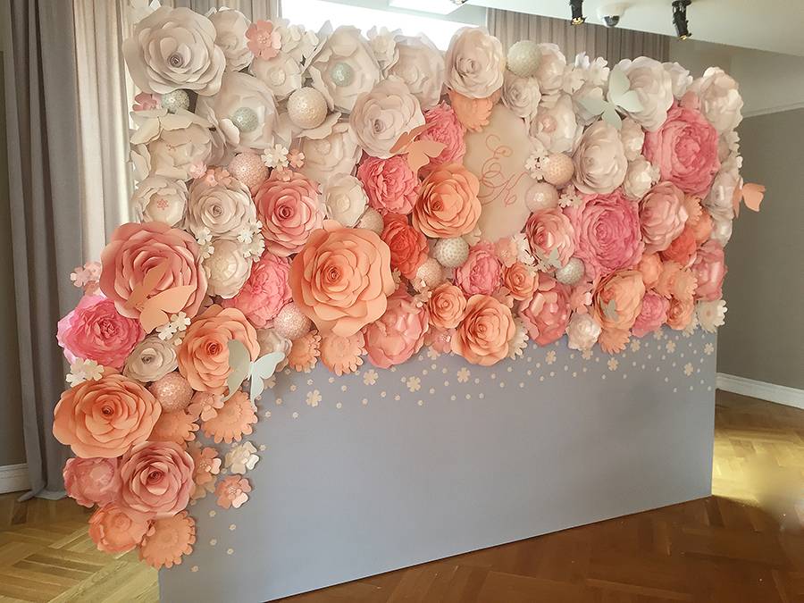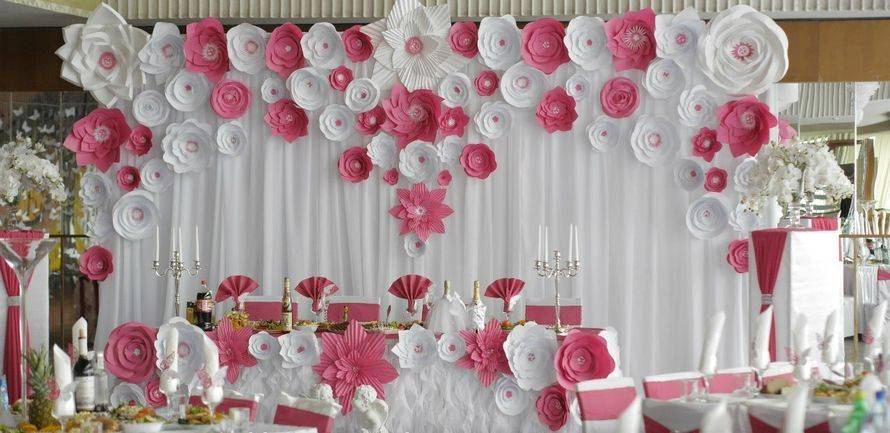 В зависимости от того, как будет меняться настроение, достаточно будет просто менять одни бумажные цветы другими, не тратя при этом денежных средств на проведение косметического ремонта в зале.