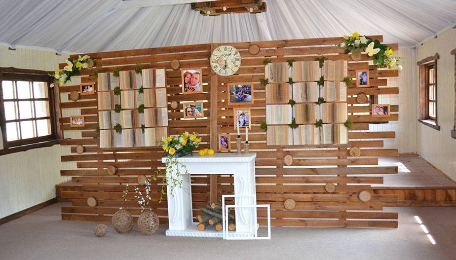 - Фотозону, в идеале, хорошо бы установить в озелененном участке, полном растительности. Минимальная территория для фотозоны — 2 кв.м. Если вы играете свадьбу в дождливую или снежную погоду, то декорация для создания красивых фотографий должна быть установлена в тихом месте ресторана, где предусмотрена зона для релаксации.