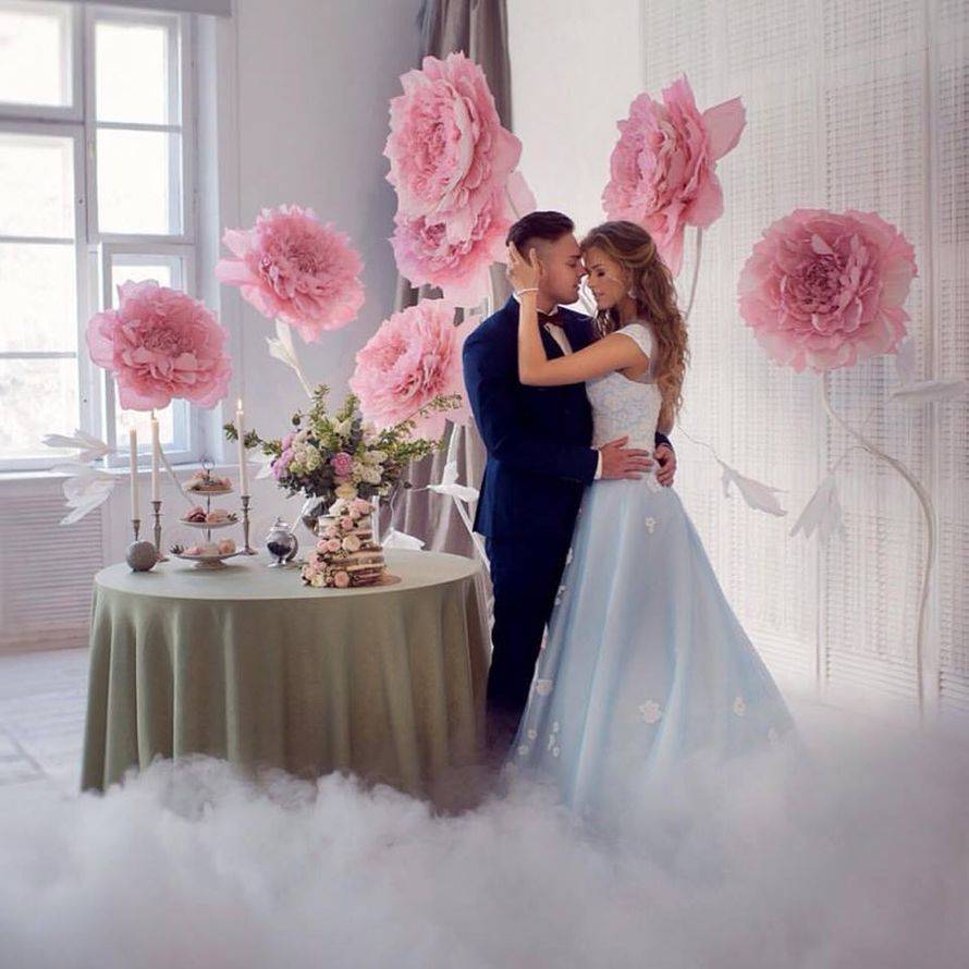 Живые цветы лучше не применять, потому что за целый день они просто завянут и испортят красивый дизайн фотозоны.
