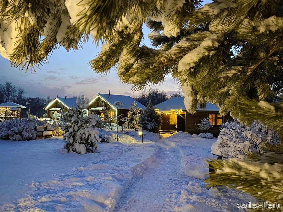 Центр отдыха предлагает возможность отлично провести праздничные дни в деревянных коттеджах или шале с размещением от 2 до 6 человек. Главным развлечением будет увлекательная конная прогулка, а тем, кто в Новый год желает кататься на лыжах, предлагается прокат снаряжения. Отдельные трассы для тюбинга и лыжников.