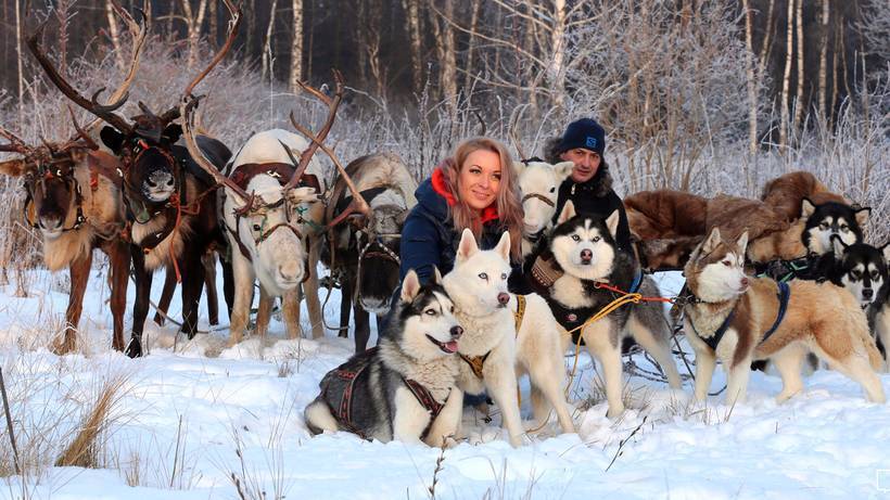 Ездовые хаски покатают посетителей на санях или ватрушке. Помимо этого, с собаками можно играть, гулять и фотографироваться.