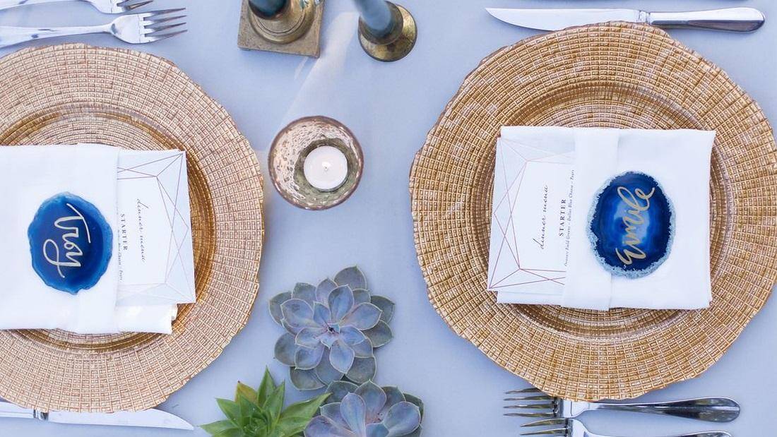 Полудрагоценный агат даёт массу идей для украшения зала. Он имеет более 150 оттенков. Каждый из них имеет магическое значение. Красные камни приносят в семью мир и любовь, голубые – взаимопонимание, зеленые защищают семью от врагов и недоброжелателей, серые – терпимость в отношениях. Разнообразная цветовая палитра позволит не ограничивать фантазию и сделать вечер незабываемым как для виновников торжества, так и для их гостей.