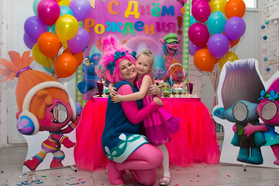 Тролли – это яркие и удивительные персонажи мультфильма, так полюбившиеся многим детям и даже взрослым. Если Ваше чадо успело привязаться к этим бесхитростным мультяшным персонажам, не ломайте голову над тематикой детской вечеринки, берите троллей и не прогадаете. Оформлять праздник очень просто ведь для этого подойдут любые яркие и насыщенные оттенки. Приятной изюминкой праздника станет тематический кэнди-бар с огромным количеством вкусностей, фруктов, печенек и капкейков. Не забываем о главном угощении – торте с соответствующим мероприятию декором. Дополнить атмосферу мероприятия помогут: пиньята, дискотека, всевозможные конкурсы и мастер классы, шоу мыльных пузырей и маленькие подарки-сюрпризы для гостей.