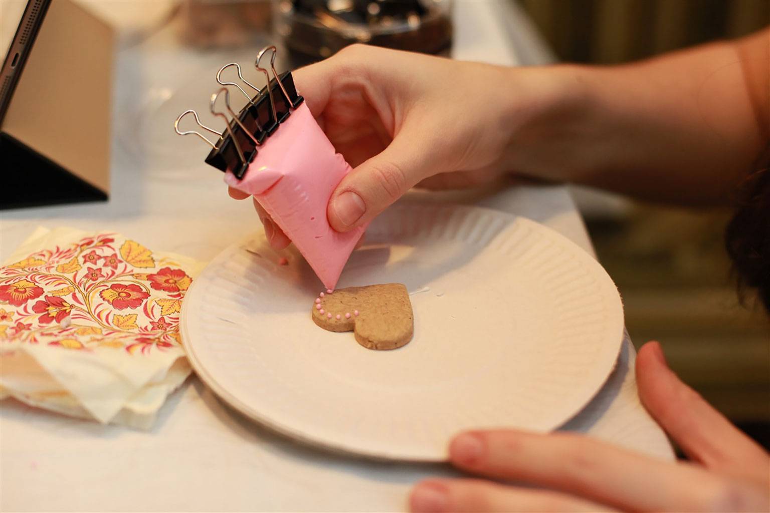 Готовую глазурь можно легко наносить на пряники при помощи кондитерского шприца или обычного пакета. Если вы хотите полностью залить поверхность печенья глазурью, то используйте специальный айсинг, который необходим для того, чтобы обозначить края изделия.