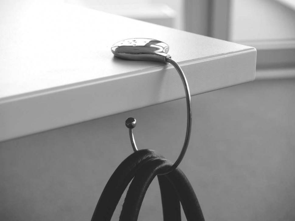 Не менее важными атрибутами стола являются крючки для подвешивания. Конечно, прямого отношения к трапезе они не имеют. Однако крючки устанавливаются на мебель, что позволяет повесить на них сумки или другие аксессуары.
