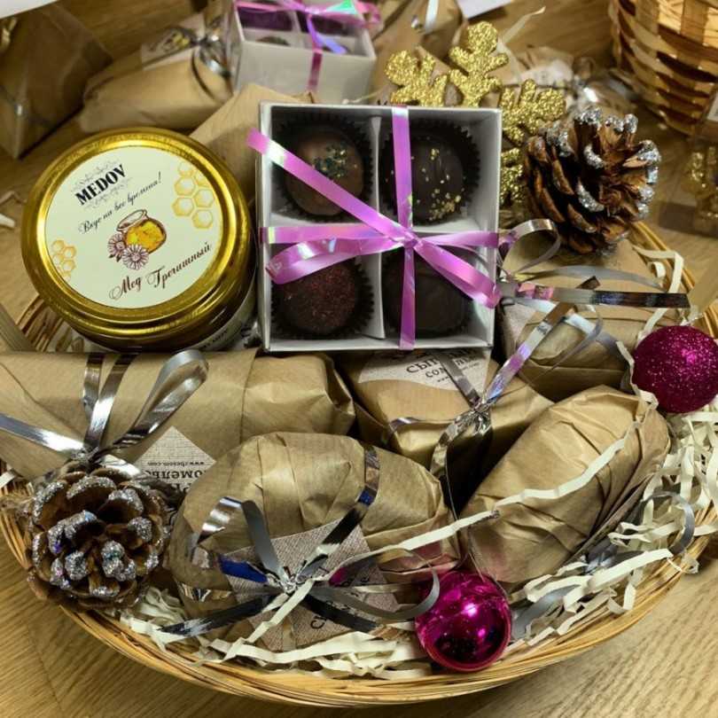 Любимые лакомства для сестры сопровождают добрые шутки, пожелания и напутствия, памятные семейные фото.