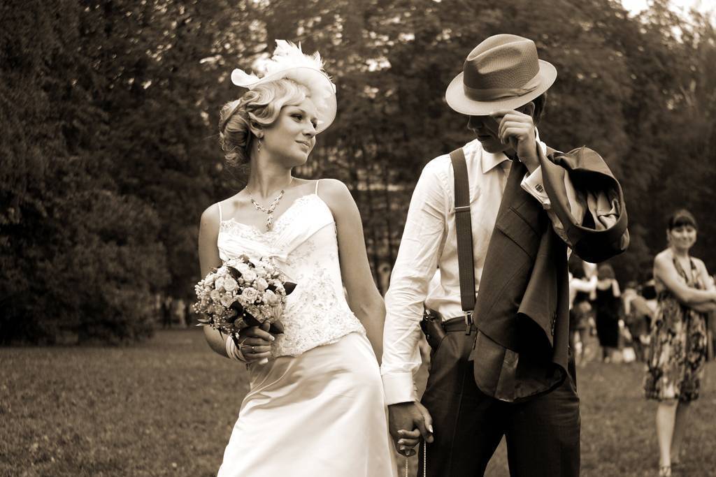 Задумка провести самый важный день для молодой семьи в гангстерском стиле непременно оставит массу ярких впечатлений, радостных воспоминаний и эффектных фотографий. Главными фигурами тематической свадьбы, разумеется, должны стать жених с невестой в роли респектабельного бандита и его верной и неотразимой спутницы.
