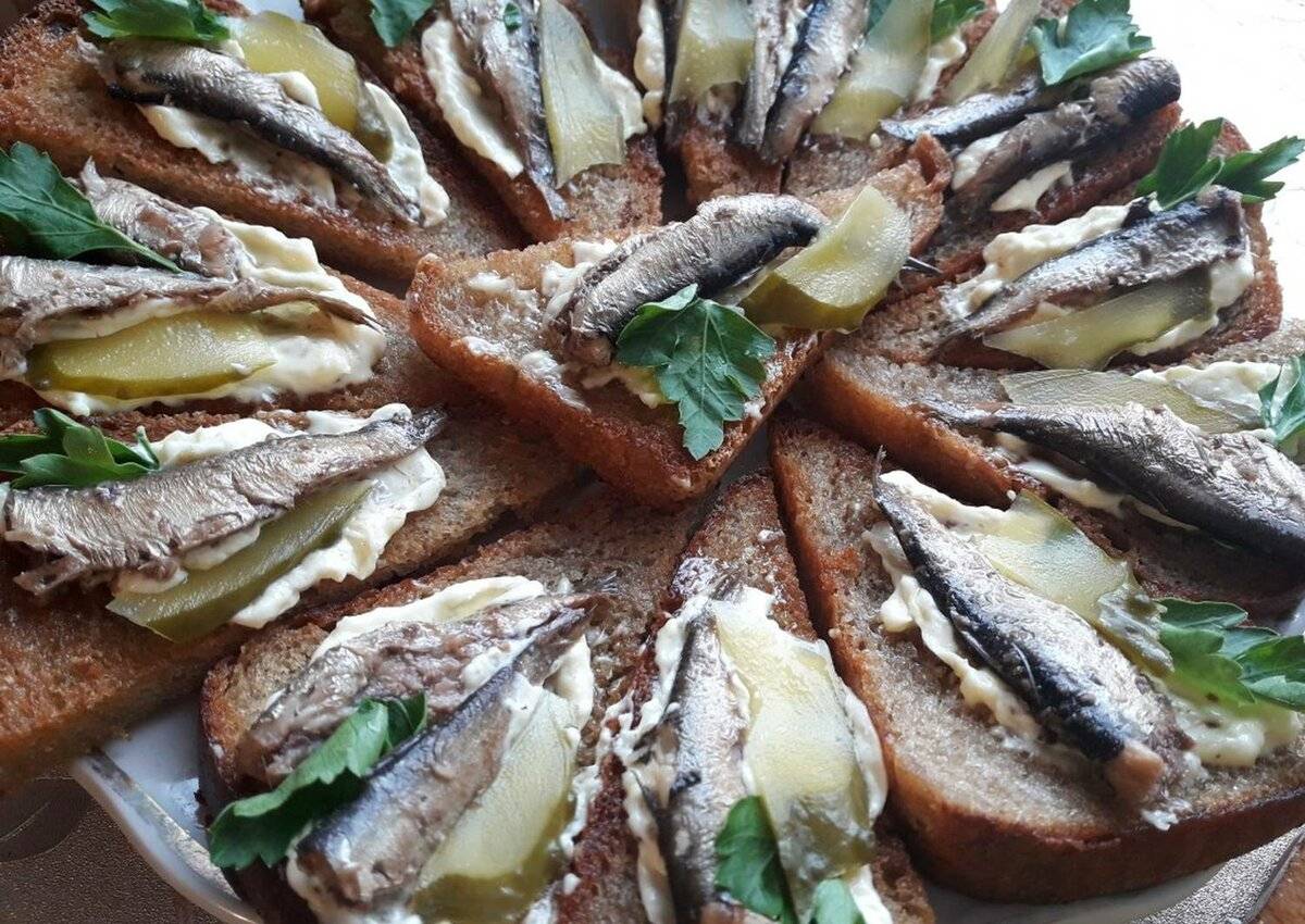 бутерброды со шпротами;