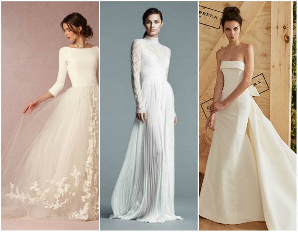 Как классика стиля свадебной моды и в этом сезоне смело варьировали во всех свадебных коллекциях гладкие минималистические длинные свадебные платья. Простота всегда имеет свое место в свадебном мире, и этим образом мечты минималистских невест сбываются.