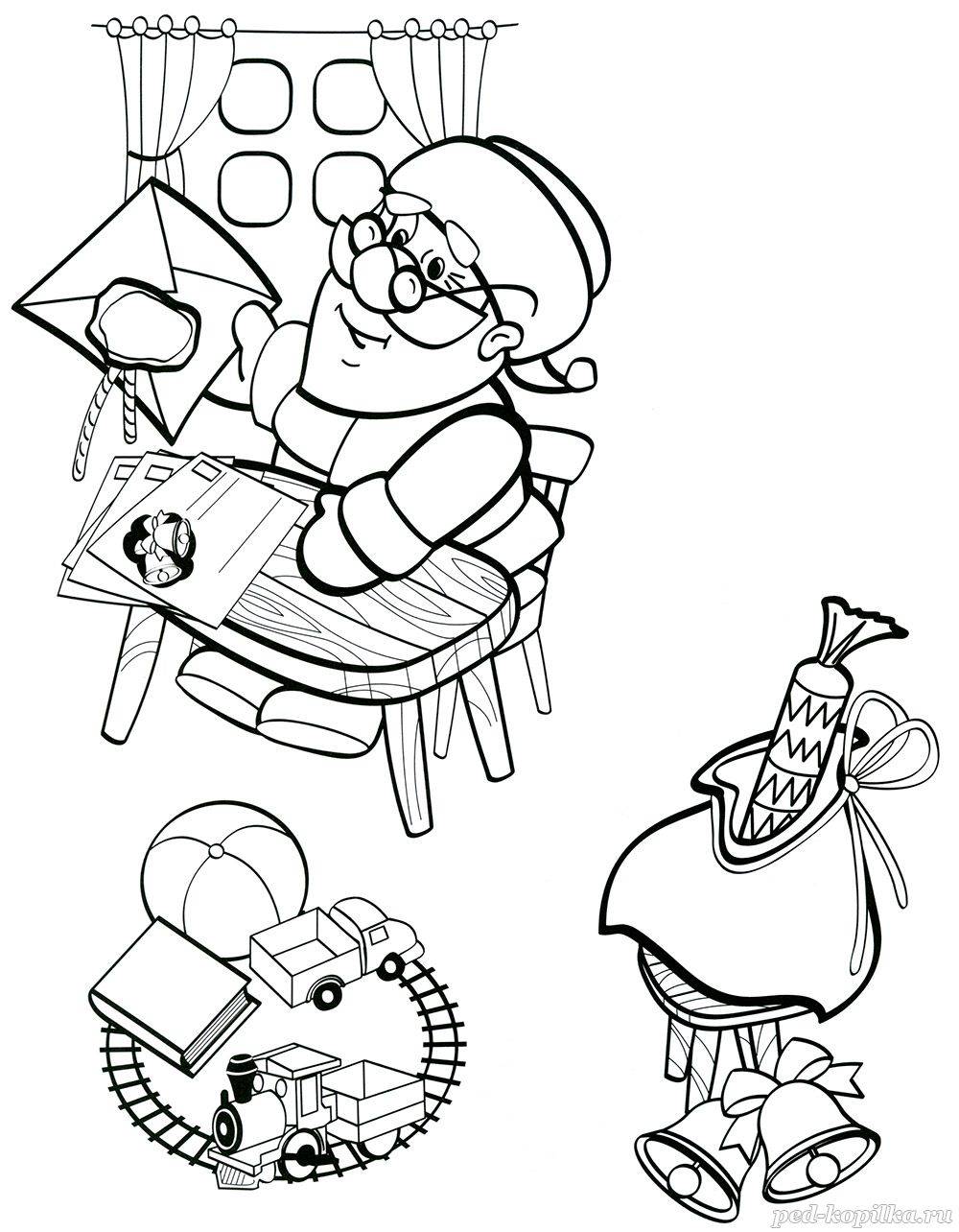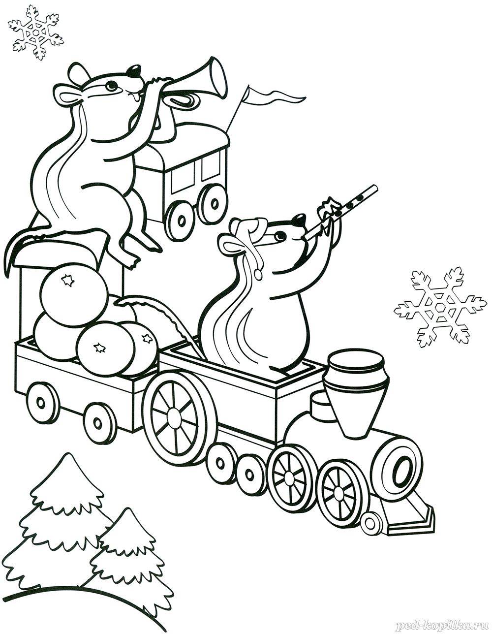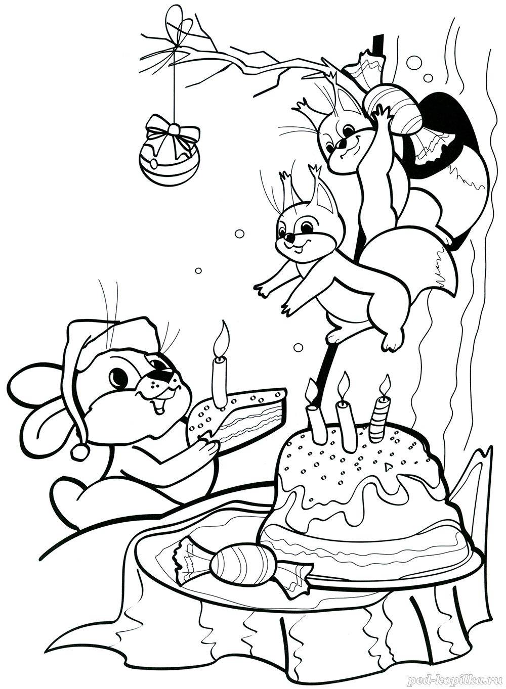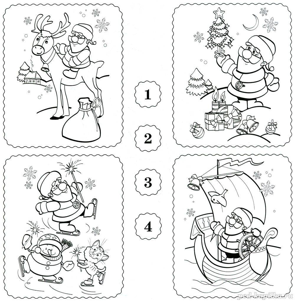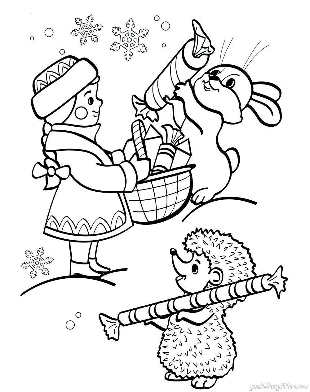 Дедушка Мороз решил поздравить с Новым годом своих друзей — кота Мурзилку и снеговика Недотёпу. Он приготовил им подарки и решил взять с собой маленькую ёлочку. Сначала Дед Мороз долго плыл на корабле по морю. Потом ехал на олене. Наконец, Дедушка встретился с друзьями, и все вместе они отправились на каток.