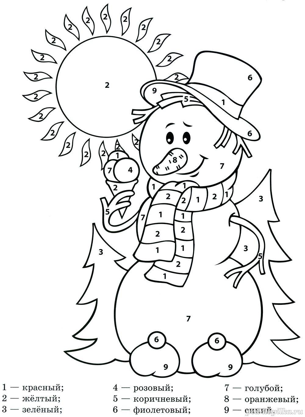 Раскрась рисунок, используя условные обозначения внизу страницы.