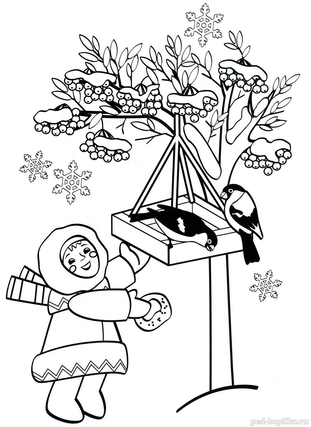 Посчитай, сколько на картинке птичек. А сколько детей?. Раскрась рисунок.