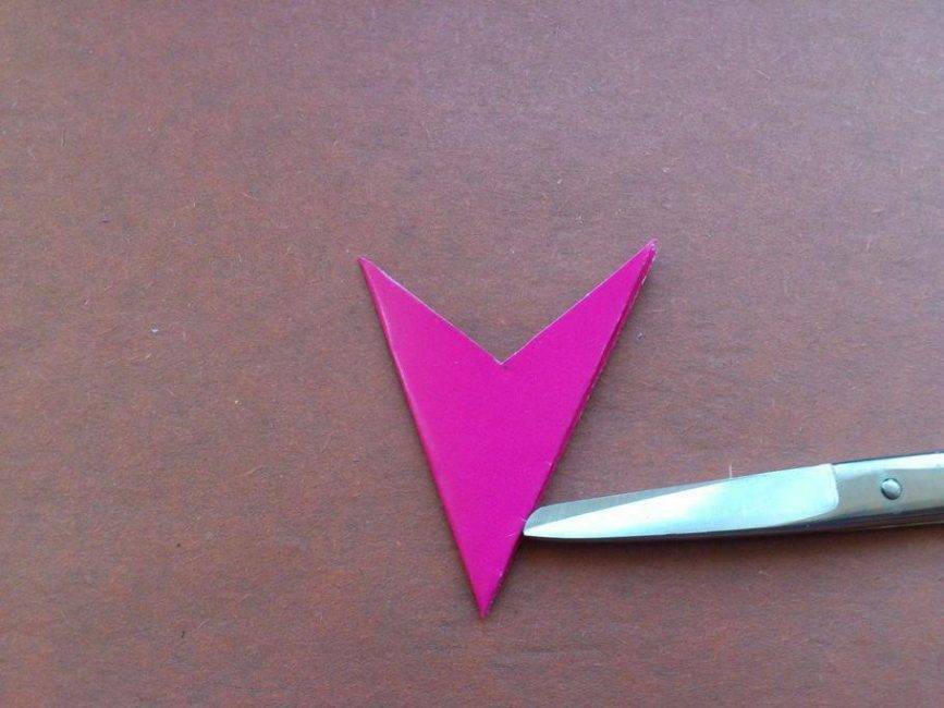 Свободные края вырезаем в форме угла, раскрываем фигуру и склеиваем два края изделия.