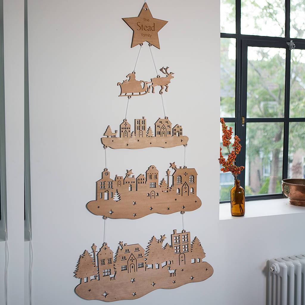 - Украшение стен новогодним панно, праздничными календарями и гирляндами.