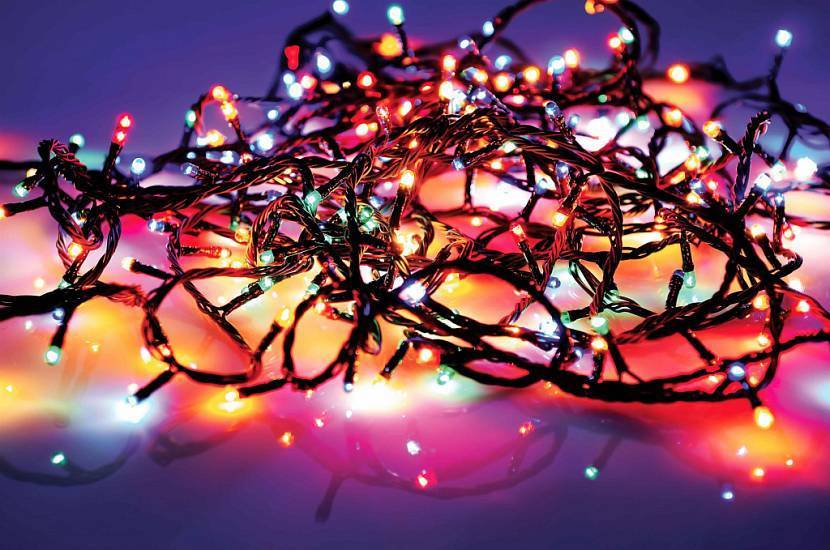 Красивая ёлка обычно наряжена в гирлянды. Форм и цветов огромное множество. Есть гирлянды с маленькими одноцветными огоньками, есть с большими переливающимися лампами. Здесь всё зависит от конкретного случая.