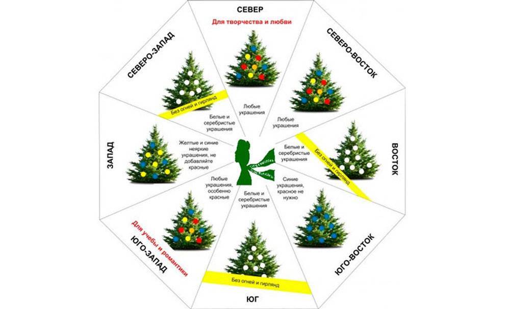 - поместив новогоднее дерево в восточном углу, можно надеяться на семейное счастье