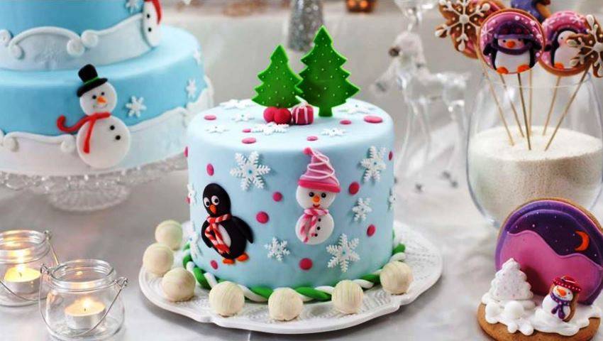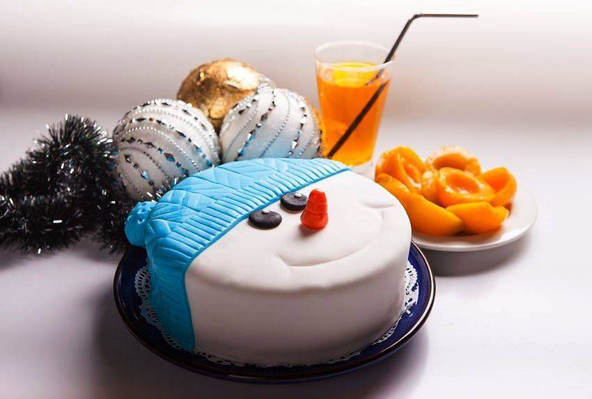 Помимо украшения торта кремом, я предлагаю реализовать другой способ. Пример второй – тортик с декором в виде тематических фигурок из мастики. Из нее можно слепить любую форму вплоть до елочек и снежинок.